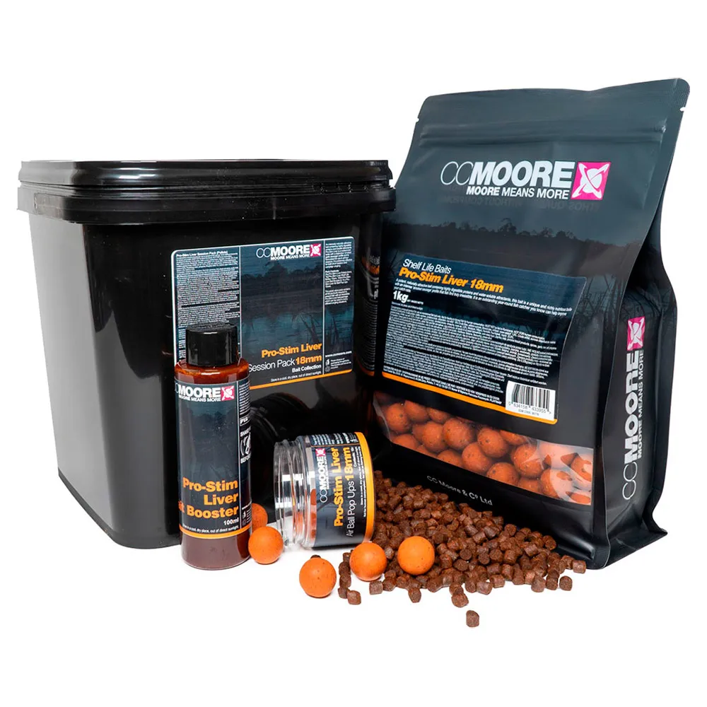 CC Moore Pro-Stim Liver Session Pack 15mm15 PROSTIM LIVDieses preiswerte Paket enthält alle Produkte, die benötigt werden, um Fische mit einem hochattraktiven Pro-Stim Liver Köderpaket zu präsentieren, das in vielen verschiedenen Angelsituationen eingesetzt werden kann.