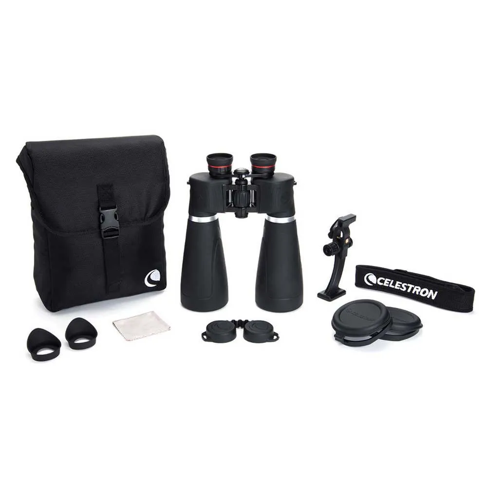 Die SkyMaster Pro Ferngläser sind die ideale Wahl für Amateurastronomen oder alle, die in große Entfernungen beobachten. Im Vergleich zu preiswerteren Ferngläsern mit großer Öffnung verwendet SkyMaster Pro eine überlegene Optik, Beschichtungen, Innenteile und Gehäusematerialien. Mit großen Objektivlinsen, BaK-4-Prismen und vollständig mehrfach beschichteten Optiken, die Celestrons proprietäre XLT-Beschichtungstechnologie verwenden, ist der Blick durch ein SkyMaster Pro in dieser Preisklasse unübertroffen.