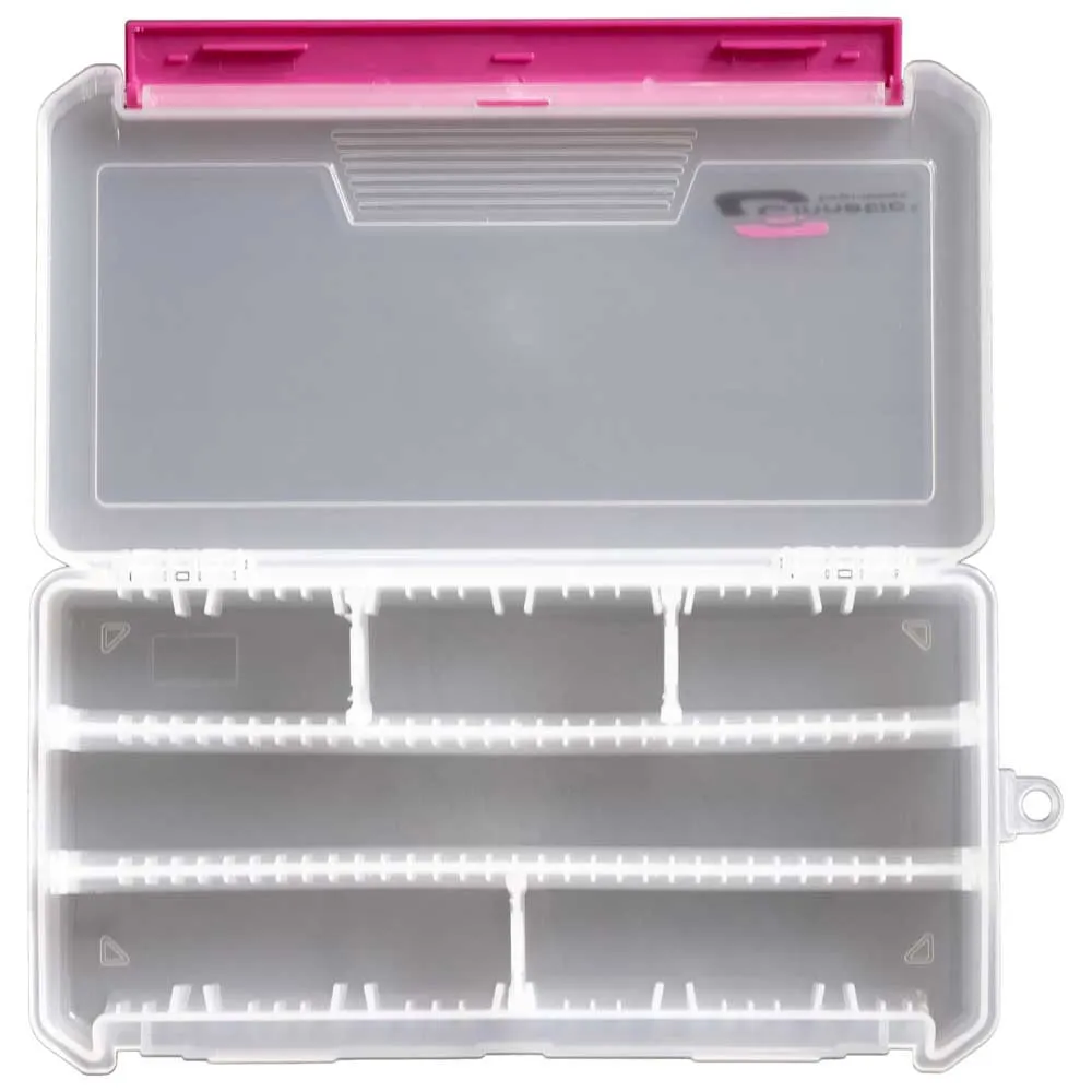 Rechteckige, durchsichtige Kunststoffbox mit horizontaler Unterteilung und mittlerer Größe, ideal für Köder mit einer Länge von bis zu 22 cm. Schnelles und einfaches Öffnungssystem durch einen Schaft. Der Innenraum ist mit individuell anpassbaren Einteilungen gemacht.