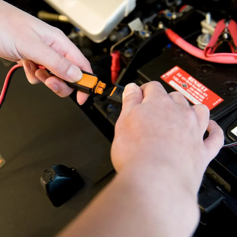 Eine gute Kombination aus Ladegerät und Tester. Eine breite Palette von Akkukapazitäten, die vom Motorrad bis zum Auto passen. Zwei Arten von Kontakten.