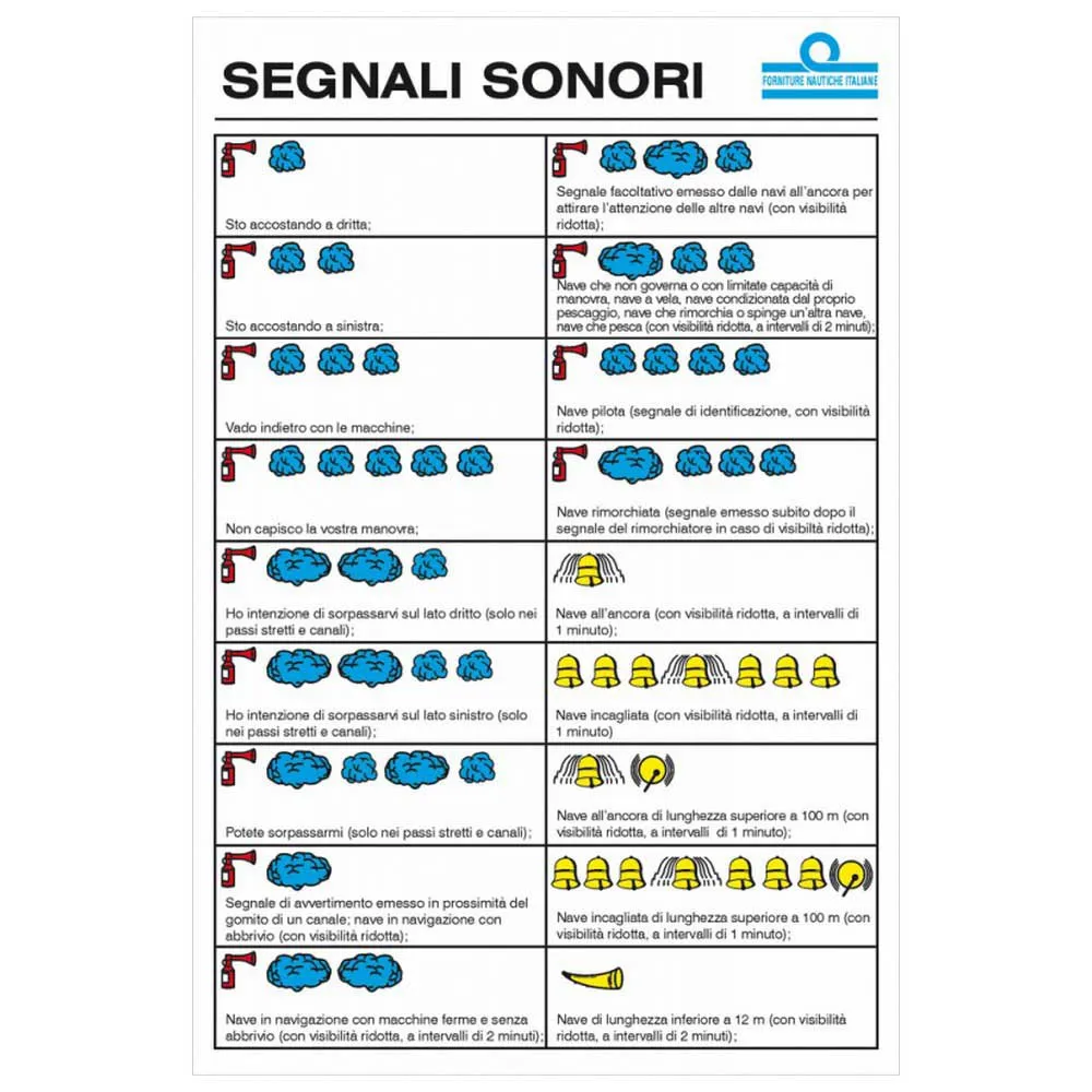 Verbessern Sie die Sicherheit an Bord und erfüllen Sie internationale Vorschriften mit der ERREGRAFICA Schallsignaltafel. Dieses unverzichtbare Sicherheitsausrüstungsteil ist für alle Arten von Schiffen konzipiert, von kleinen Freizeitbooten bis hin zu größeren Handelsschiffen, und gewährleistet eine klare und standardisierte Kommunikation in Notfallsituationen. Die Schallsignaltafel bietet eine schnelle und einfache visuelle Referenz zum Verständnis und zur Verwendung der korrekten Schallsignale gemäß den Internationalen Regeln zur Verhütung von Zusammenstößen auf See (COLREGs). Vermeiden Sie Verwirrung und potenzielle Unfälle, indem Sie diese wichtigen Informationen am Steuerstand griffbereit haben.