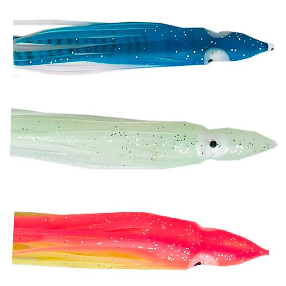 Vielseitigkeit ist der Kern seines Designs. Diese Oktopus-Köder eignen sich perfekt für eine Vielzahl von Rigging-Anwendungen. Verwenden Sie sie einzeln an einem Schleppvorfach, reihen Sie sie aneinander, um einen verlockenden Daisy-Chain-Teaser zu erstellen, oder verwenden Sie sie als lebhaften Rock über Ihren bevorzugten beschwerten Schleppköpfen und Plugs, um zusätzlichen Glanz und Aktion hinzuzufügen. Ihre Wirksamkeit sowohl als Hauptköder als auch als Teaser macht sie zu einem unschätzbaren und anpassungsfähigen Werkzeug für jede Schleppauslage.