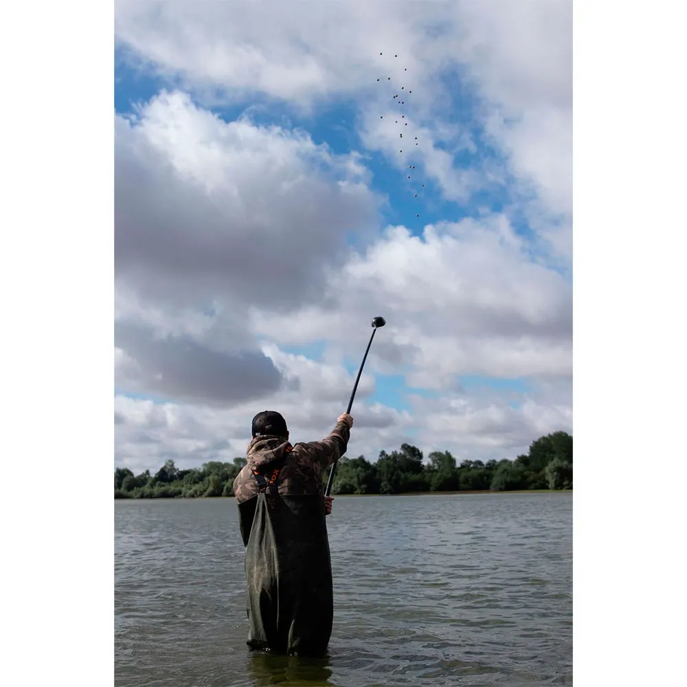 Die innovative geschlitzte Basis ist ein Wendepunkt für Angler, die feuchte Köder wie Partikelmischungen oder eingeweichte Pellets verwenden. Diese strategisch platzierten Schlitze ermöglichen es, überschüssiges Wasser und Spod-Flüssigkeit vor dem Wurf schnell abfließen zu lassen. Dies reduziert nicht nur das Gesamtgewicht für eine sanftere, komfortablere Wurfaktion, sondern verhindert auch unerwünschtes "Aufklatschen", das vorsichtige Fische verschrecken kann. Das Ergebnis ist eine konzentriertere und diskretere Ausbringung Ihres gewählten Köders, wodurch der Fokus auf der Anziehung und nicht auf der Störung bleibt. Der erhöhte Vorwärtswinkel des Löffels wurde sorgfältig berechnet, um die optimale Flugbahn bei Verwendung mit einer langen Stange zu gewährleisten, ein Verschütten während des Vorwärtsschwungs zu verhindern und eine saubere Freigabe des Köders am Scheitelpunkt Ihres Wurfs sicherzustellen.