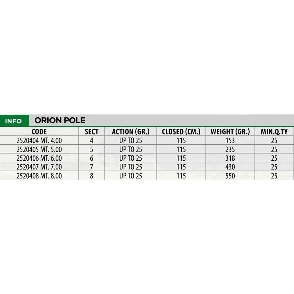 Tragbarkeit und Komfort stehen im Mittelpunkt des Orion-Designs. Mit ihrer intelligenten Teleskopkonstruktion lässt sich die Rute auf eine kompakte und handliche Größe zusammenklappen, was den Transport und die Lagerung unglaublich einfach macht. Vergessen Sie den Aufwand, lange, umständliche Ausrüstung zu tragen. Die Orion passt mühelos in Ihr Auto, Ihre Rutentasche oder Ihre Angelausrüstungstasche und stellt sicher, dass Sie immer für einen spontanen Angelausflug bereit sind. Auf- und Abbau dauern nur wenige Sekunden, wodurch Sie Ihre wertvolle Zeit am Ufer maximieren.