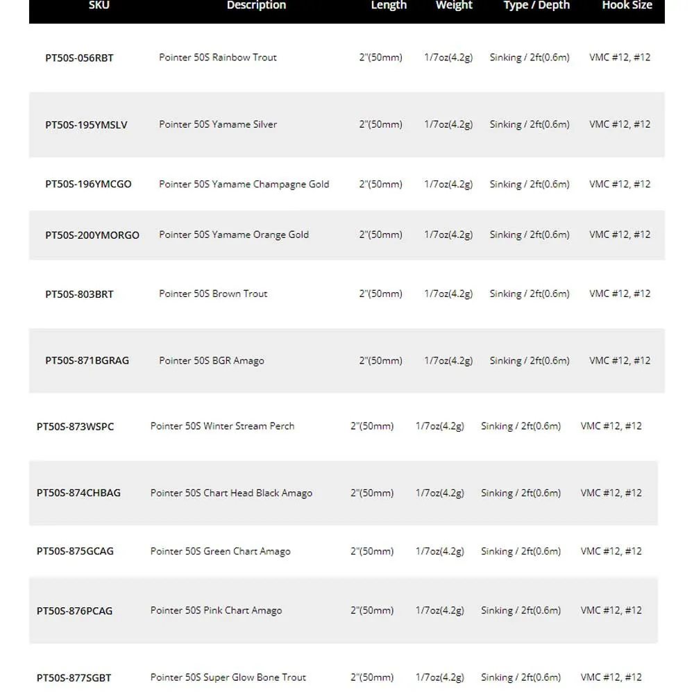 Die Original-Pointer-Serie hat eine lebendige, kraftvolle Aktion mit einem seitlichen Rutschen. Sie dringt lautlos in das Ziel ein und greift unvorsichtige Barsche an. Der POINTER wird 4 - 5 Fuß tief schweben und während des Schwebezustands eine faszinierende Bass-Vibration aussenden. Das niedrige Schwerpunkt sorgt dafür, dass der Köder wackelt und vibriert, wenn die Wiederaufnahme pausiert wird. Diese Rollaktion stimuliert die Seitenlinie des Fisches, löst einen instinktiven Biss aus und veranlasst ihn, auch während der Nicht-Fütterungszeiten zuzuschlagen. Dieses Produkt ist der Wunderköder für Barsch, Forelle, Hecht und jede Fischart.