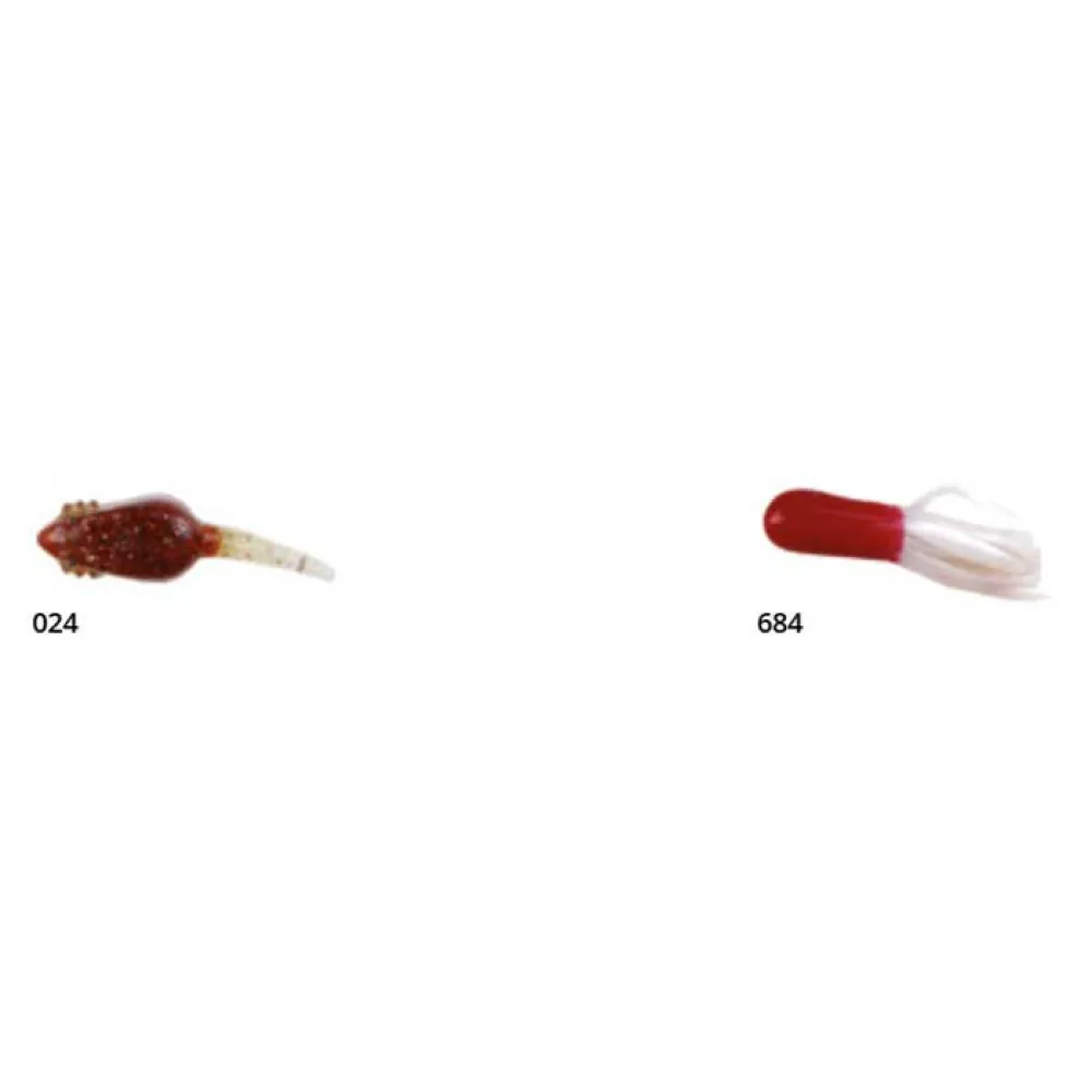 Der weiche, flexible Körper des Köders ist langlebig und kann mehreren Schlägen von Fischen standhalten, ohne seine Form oder Wirksamkeit zu verlieren. Er ist mit scharfen, hochwertigen Haken ausgestattet, die einen starken und sicheren Halt für Ihren Fang gewährleisten. Das 684-Farbmuster des Köders wurde entwickelt, um Fische in einer Vielzahl von Wasserbedingungen und Lichtsituationen anzulocken.