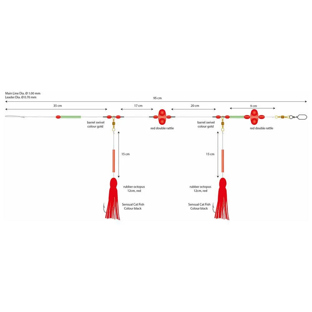Mit viel Liebe zum Detail gefertigtes Rig, seine einzelnen Elemente, wie Klapperschlangen und rote Kraken, locken Wolfsfische effektiv an und provozieren sie zum Angriff. Perfekt für Tiefen von 5 bis 50 m. Entwickelt für: Seewolf, Lumb, Leng und Kabeljau.