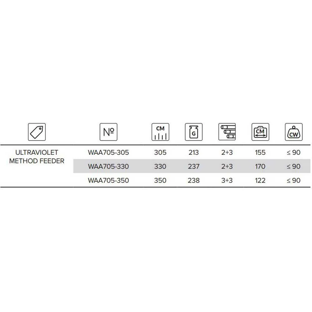 Eine ideale Lösung für alle, die beim „Method feeder“ Fischen eine größere Kraftreserve benötigen. Alle, die unsere „Method“-Angelruten kennen, wissen genau, dass sie in jeder Hinsicht ausgefeilt sind. Das gleiche ist in diesem Fall. Wir haben uns entschlossen, die legendäre Rute der „Ultraviolet“-Serie, die Ihnen nach den Informationen unserer Tester bestens als zuverlässiges und äußerst universelles Feeder bekannt ist, zu modifizieren. Wenn Sie eine etwas schnellere Rute benötigen, zögern Sie nicht, der UV-Methoden-Feeder ermöglicht weitere Feeder-Wurf und hilft Ihnen, das echte Karpfentier zu erlegen