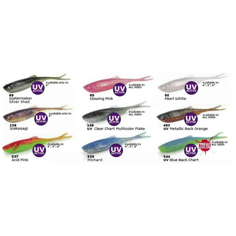 Seine besondere Form und der V-Schwanz ermöglichen eine geschwungene und attraktive Bewegung, was diesem Köder verschiedene Einsatzmöglichkeiten verleiht: