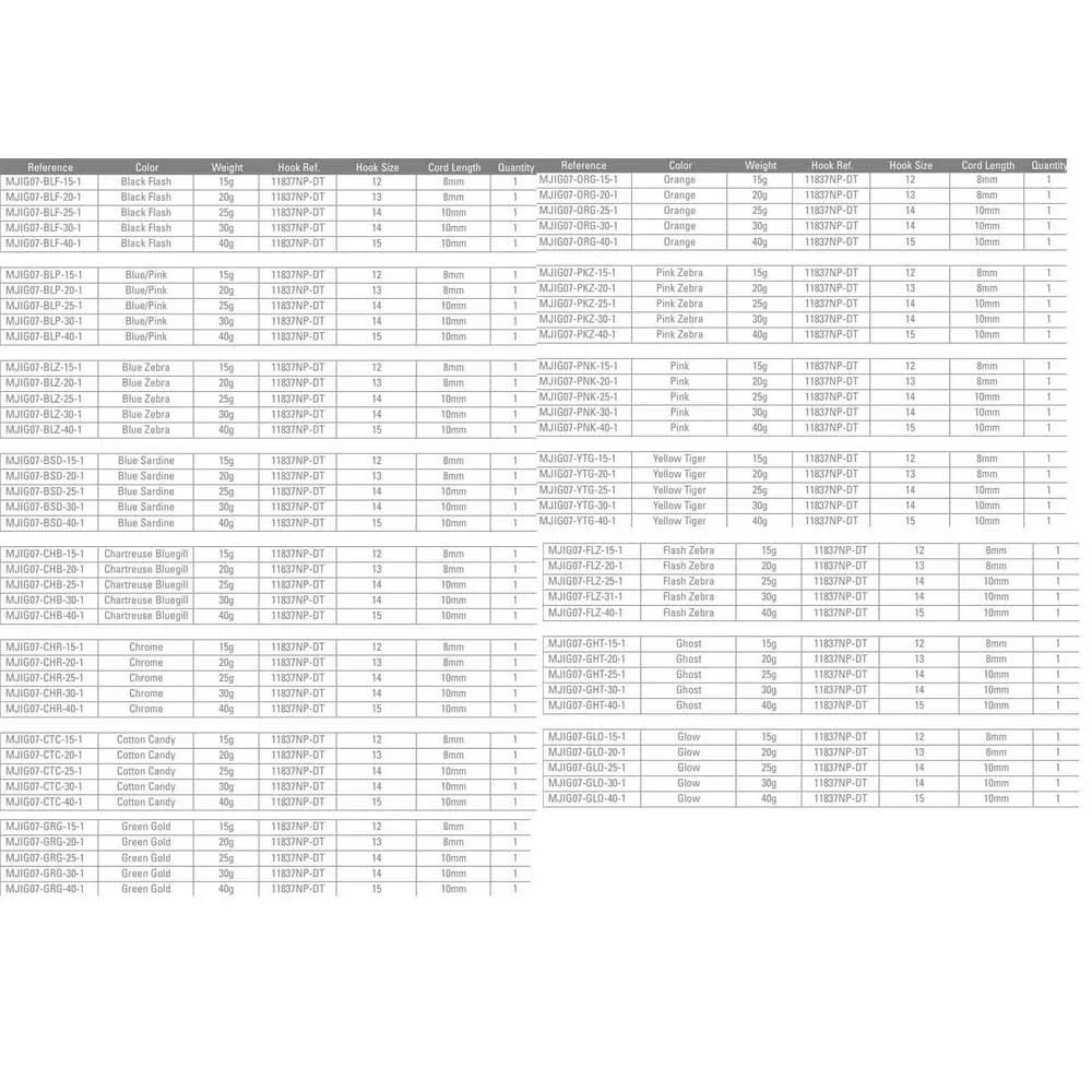 Der neue Mustad Tracershot Jig ist so konzipiert, dass er zur Luke für pelagische Köderfischpräsentationen passt, egal ob Sie an Land oder auf See werfen. Ihr aerodynamisches Profil ermöglicht ein einfaches Werfen und ihr stromlinienförmiger Körper reagiert schnell auf leichte Bewegungen der Rutenspitze. Verfügt über einen Mustad 11837NP DT-Haken.