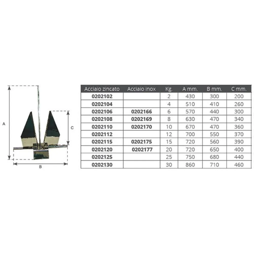Dieser Anker ist von 2 kg bis 30 kg erhältlich und ich kann bestätigen, dass die Qualität sehr gut ist. Ich habe 2 Stück, Haupt- und Ersatzsegel, à 6 kg für mein 7-Meter-Segelboot.