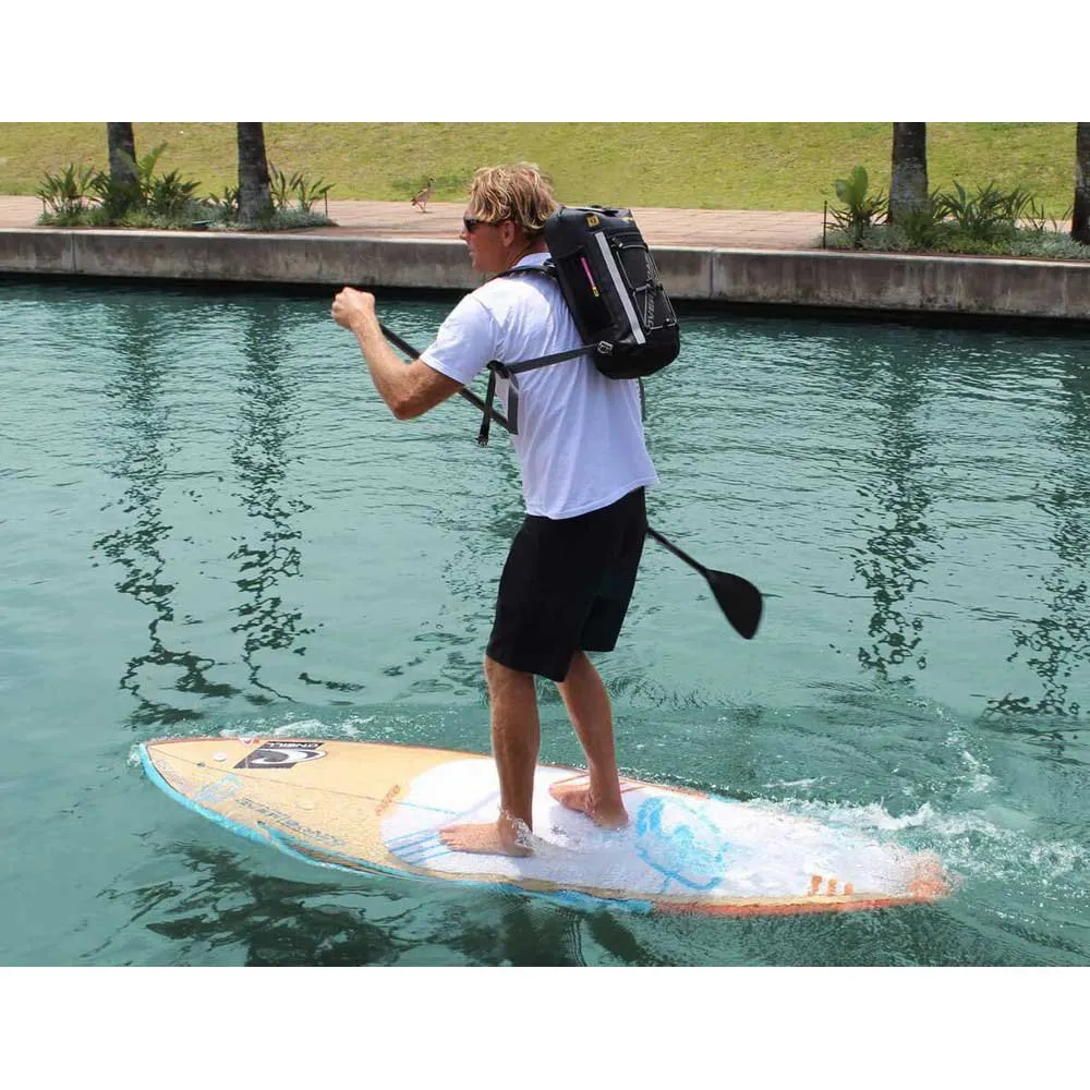 Von der großen Reißverschlusstasche mit Reflexstreifen auf der Vorderseite bis zu den gepolsterten Schultergurten und dem luftdurchlässigen Rückenteil ist dieser wasserdichte OverBoard Pro Light Rucksack ein bequemes und praktisches Set für jeden Wassersportler oder Radfahrer.