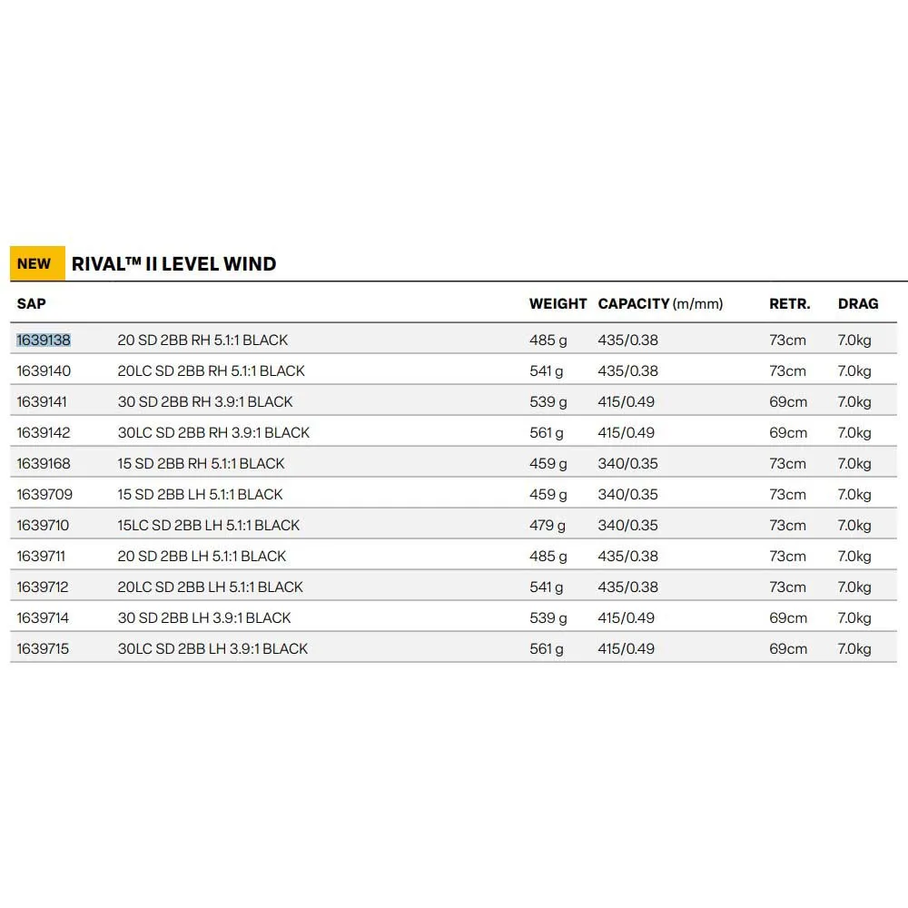 Eigenschaften von PENN Rival™ II Level Wind 20L