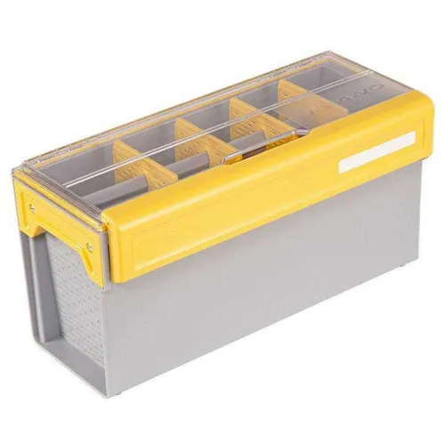 Die Box ist dank der verstellbaren Trennwände vollständig anpassbar, sodass Sie Ihre Köder nach Farbe, Größe oder Jahreszeit organisieren können.