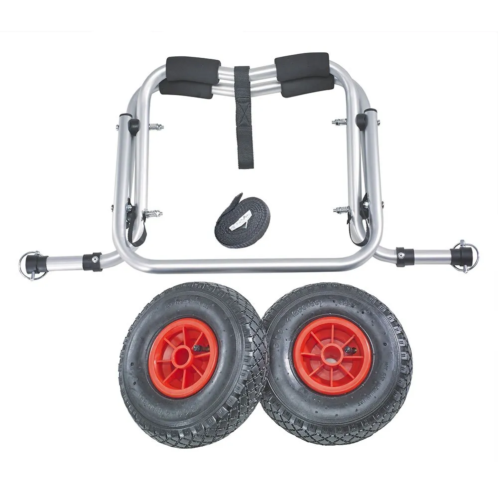 Der Wagen ist mit großen, aufblasbaren Reifen ausgestattet, die sich leicht über eine Vielzahl von Untergründen manövrieren lassen, darunter Sand, Kies und Gras. Die verstellbaren, gepolsterten Gurte halten Ihr Kajak während der Fahrt sicher in Position und sorgen dafür, dass Ihre Ausrüstung während des Transports sicher und geschützt ist.