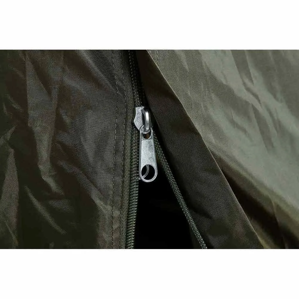 Zwei-Wege-Reißverschlüsse an der Vordertür ermöglichen es, diese in einer Briefkasten-Konfiguration zu verwenden, sodass du bei schlechtem Wetter weiterhin die Fischaktivitäten beobachten kannst, selbst wenn du in der Bivvy gefangen bist.