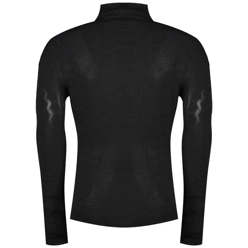 Die Konstruktion dieser langärmligen Basisschicht ist ein Meisterwerk der Textiltechnik. Durch die Verwendung eines proprietären Kettwirkverfahrens ist das Kleidungsstück vollständig nahtlos, wodurch potenzielle Scheuerstellen vermieden und eine echte zweite Haut geschaffen wird. Diese fortschrittliche Technik ermöglicht die Schaffung von Body-Mapping-Zonen mit unterschiedlichen Dichten. Offene Mesh-Muster werden in stark schwitzenden Bereichen platziert, um die Atmungsaktivität und den Feuchtigkeitstransport zu maximieren, während dichtere Strukturen Halt und verbesserte Isolierung bieten, wo sie am meisten benötigt werden. Das Ergebnis ist ein hochelastisches Kleidungsstück, das sich mit Ihnen bewegt und uneingeschränkte Bewegungsfreiheit bietet.