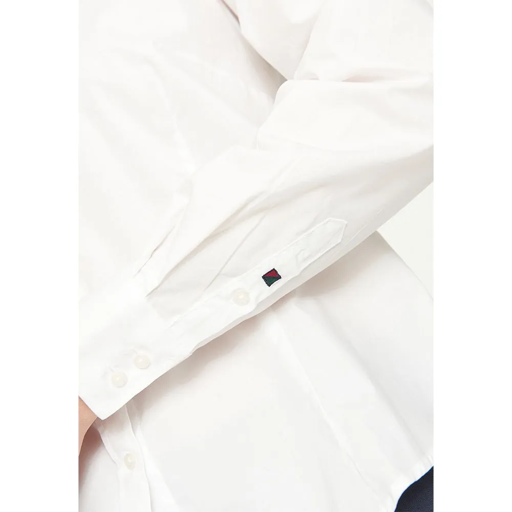 Das Design verkörpert eine minimalistische Ästhetik und ist somit eine unglaublich vielseitige Grundlage für unzählige Outfits. Der knackige, klassische Hemdkragen verleiht einen Hauch von professioneller Eleganz, während das schlichte, einfarbige Design als perfekte Leinwand für Accessoires dient. Durchgehende lange Ärmel münden in edlen Manschetten, von denen eine die dezente und vornehme Redgreen-Logo-Stickerei trägt – ein Markenzeichen für authentische Qualität und dezenten Luxus. Dieses durchdachte Detail hebt das Shirt von einem einfachen Basic zu einem Signature-Piece.