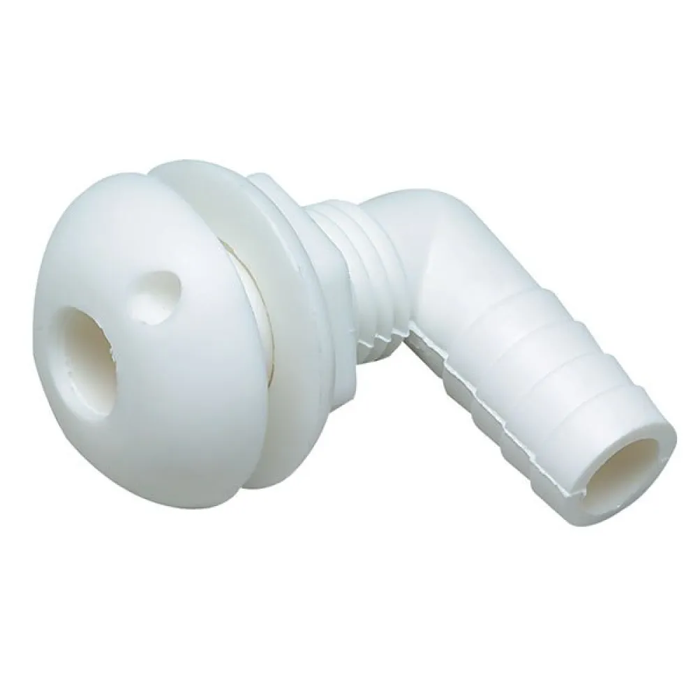 Anwendung mit zwei Nüssen. Hochschlagfester weißer Kunststoff. Entwickelt für Orte, an denen der Schlauch schwer zu verlegen ist. Ideal für das Leben auf Bassbooten. Nicht empfohlen für die Verwendung unterhalb der Wasserlinie.