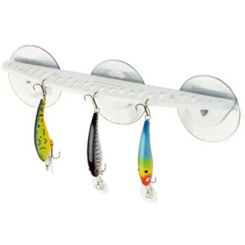 Erleben Sie unvergleichlichen Komfort und Ordnung. Dieses intelligent konzipierte Regal bietet reichlich Stauraum und hält bis zu 25 Köder und Kunstköder sicher fest. Die einzelnen Schlitze verhindern, dass sich Köder verheddern, und schützen ihre scharfen Haken und empfindlichen Oberflächen vor Beschädigungen. Über die Köderaufbewahrung hinaus bietet es einen speziellen, leicht zugänglichen Platz für Ihr Filetiermesser, wodurch sichergestellt wird, dass dieses wichtige Werkzeug sicher verstaut und dennoch sofort verfügbar ist, wenn Sie den großen Fang landen. Sein Nutzen geht über die Angelausrüstung hinaus; es dient perfekt als Satz robuster Kleiderbügel für Schlechtwetterkleidung, Handtücher oder Schwimmwesten, um diese trocken und aus dem Weg zu halten.