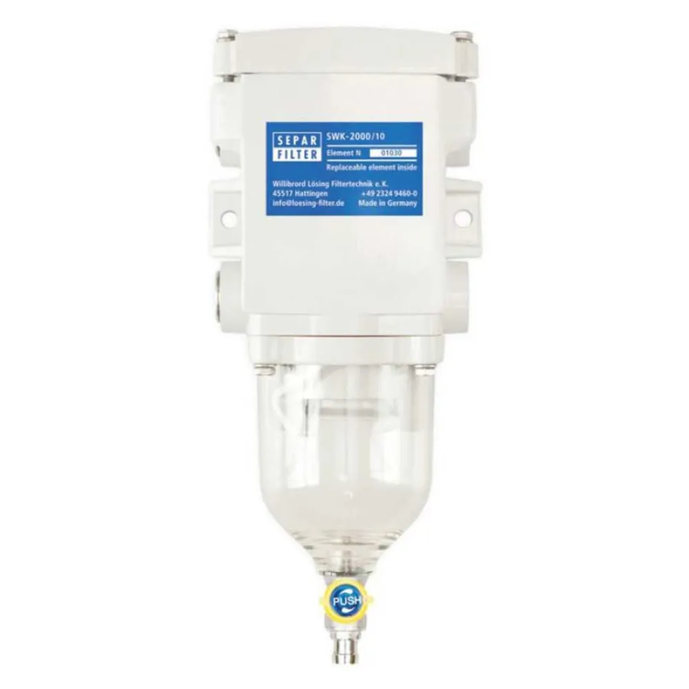 Mit dem SEPAR FILTER SWK-2000/10 können Bootsbesitzer eine verbesserte Kraftstoffeffizienz, einen geringeren Motorverschleiß und eine längere Lebensdauer ihrer wertvollen Schiffsmotoren genießen. Dieser zuverlässige Wasser-Kraftstoff-Trennfilter bietet ein beruhigendes Gefühl, da Sie wissen, dass das Kraftstoffsystem geschützt ist und der Motor sauberen, verunreinigungsfreien Kraftstoff erhält, um eine optimale Leistung auf dem Wasser zu erzielen.