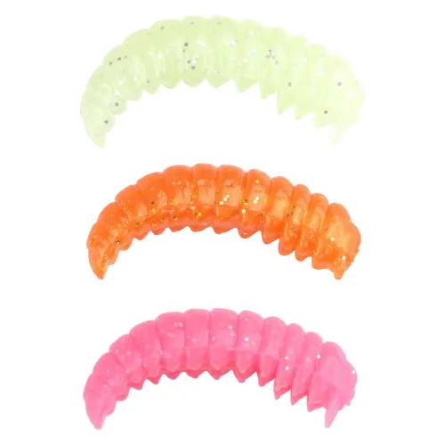 Dieser weiche Köder ist in einer Reihe von leuchtenden Farben erhältlich, darunter Glow, Natural, Orange, Pinky, White und Yellow. Jede Farboption ist sorgfältig so gestaltet, dass sie das Aussehen natürlicher Köderfische imitiert und Raubfische zum Schlagen verleitet.