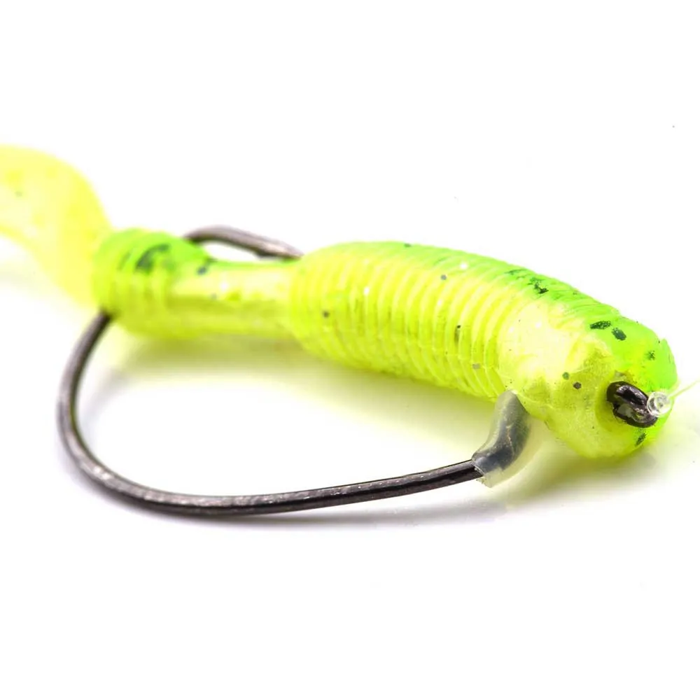 Diese Offset-Stopper sind so konzipiert, dass sie am Schaft des Offset-Hakens direkt oberhalb des Hakenauges angebracht werden. Sie dienen als Stoppunkt für weiche Kunststoffköder und verhindern, dass sie beim Werfen oder Einholen den Haken hinunterrutschen. Dies trägt nicht nur dazu bei, die gewünschte Position und Präsentation des Köders zu erhalten, sondern reduziert auch den Bedarf an häufigen Anpassungen und Neuanordnungen.