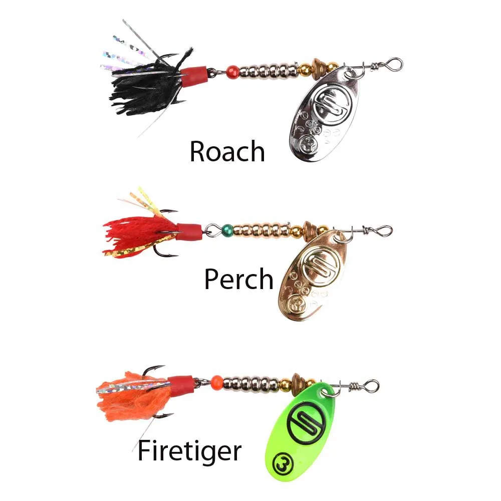 Das Fire Tiger Farbmuster verfügt über leuchtende Orange- und Grüntöne, die die Aufmerksamkeit von Raubfischen bei trüben oder schlechten Lichtverhältnissen auf sich ziehen werden. Die Farboptionen Barsch und Rotaugen sind naturnäher und ideal für Situationen mit klarem Wasser.