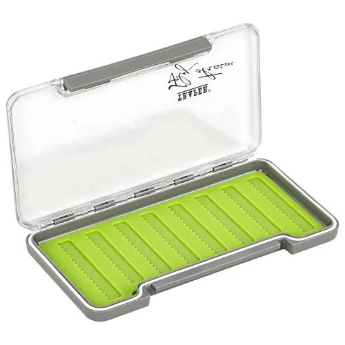 Das herausragende Merkmal dieser Premium-Box ist ihr innovatives Silikon-Interieur. Die Boxen verfügen über eine Silikonmatte für Fliegen. Der Silikoneinsatz nimmt kein Wasser auf und speichert keine Feuchtigkeit, die zum Rosten der Haken führen könnte. Dieses fortschrittliche, nicht saugfähige Material bietet einen erheblichen Vorteil gegenüber herkömmlichem Schaumstoff, der wie ein Schwamm wirken und mit der Zeit zerfallen kann. Die griffigen, präzisionsgeschnittenen Schlitze in der Silikonmatte halten Fliegen aller Größen – von den kleinsten Mücken bis zu sperrigen Streamern – mit unübertroffener Hartnäckigkeit. Ihre Fliegen bleiben genau dort, wo Sie sie platziert haben, wodurch verhindert wird, dass sie während des Transports herumklappern und beschädigt werden.