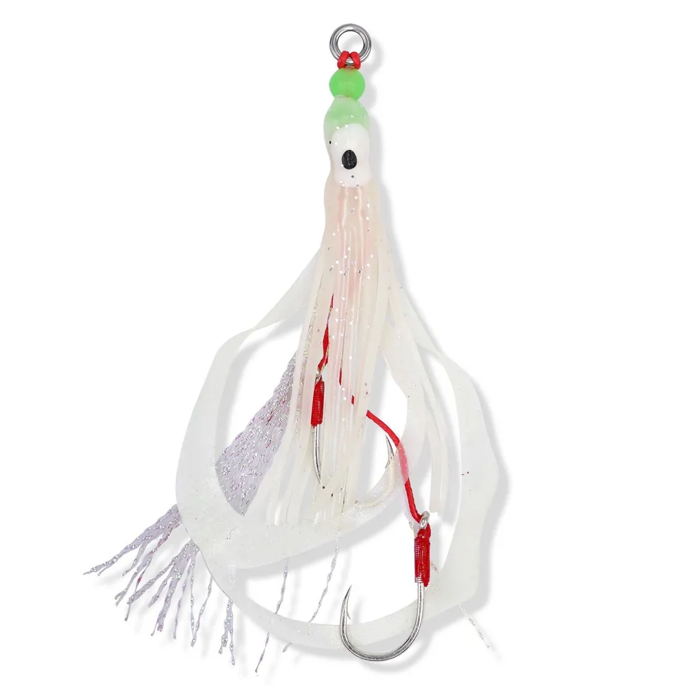 Das VMC Octo Rig 6139 zeichnet sich durch sein innovatives Design aus, das nicht nur einen, sondern gleich zwei sorgfältig gefertigte Gummifische aufweist, die jeweils mit einem messerscharfen VMC-Haken bewaffnet sind, der für seine Stärke und Durchschlagskraft bekannt ist. Dieses Doppelködersystem erhöht deine Chancen, Aufmerksamkeit zu erregen und Bisse auszulösen, drastisch und maximiert so deine Erfolgsquote auf dem Wasser.
