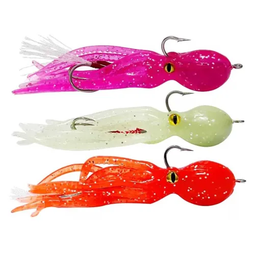 Der Yamashiro Octopus Trolling Soft Lure verfügt über ein realistisches Krakenprofil mit fließenden Tentakeln und einem lebendigen, auffälligen Farbschema. Diese lebensechte Präsentation löst aggressive Bisse von einer Vielzahl pelagischer Arten aus, darunter Thunfisch, Marlin, Wahoo und Goldmakrele. Sein sorgfältig ausbalanciertes Gewicht und sein hydrodynamisches Design ermöglichen weite Würfe und eine natürliche, verführerische Schwimmbewegung, selbst bei hohen Schleppgeschwindigkeiten. Die weiche, aber dennoch robuste Konstruktion des Köders stellt sicher, dass er die Strapazen durch kräftige Raubfische aushält, während seine scharfen, korrosionsbeständigen Haken jedes Mal einen sicheren Haken garantieren.