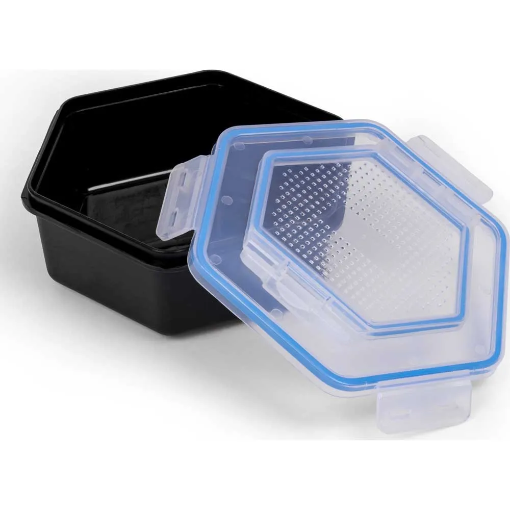 Belüfteter ´Breathe´-Deckel: Ausgestattet mit einem Muster aus feinen Perforationen, um eine essentielle Luftzirkulation zu gewährleisten und die Qualität und Lebendigkeit Ihres Köders zu erhalten.