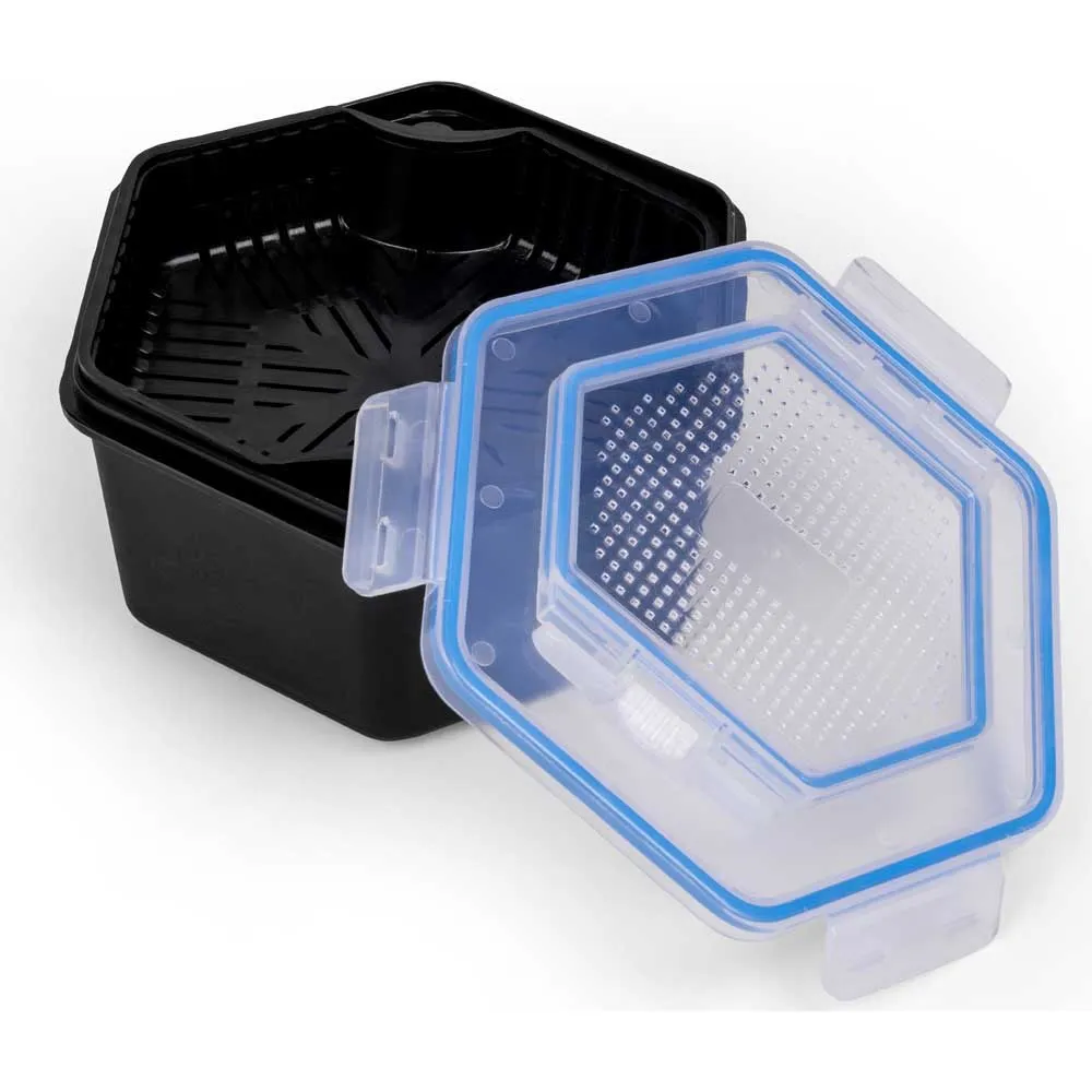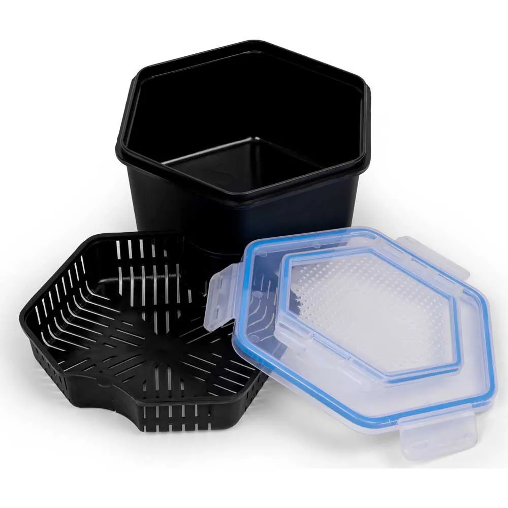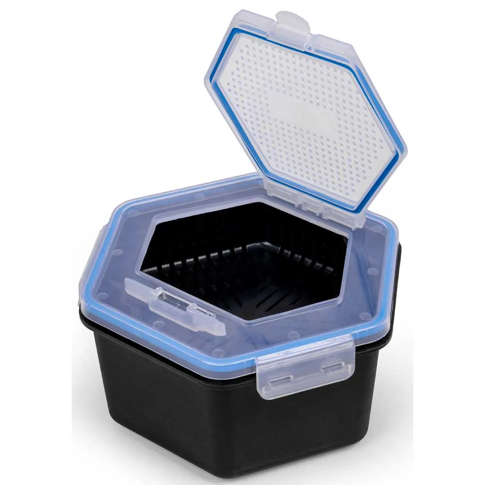 Das Geniale an diesem Produkt liegt in seinem Dual-Funktions-Design. Es ist mehr als nur ein Aufbewahrungsbehälter; es ist ein komplettes Ködermanagementsystem. Das robuste, vierfache "Secure Lock" Clip-System sorgt dafür, dass der Deckel absolut sicher befestigt ist und eine dichte Abdichtung bietet, die Ihnen das Vertrauen gibt, Flüssigkeiten und Köder ohne Angst vor Auslaufen zu transportieren. Dies macht es ideal für den Transport von eingeweichten Pellets, mit Lockstoffen vermischten Partikeln oder lebenden Ködern wie Maden und Würmern, um sicherzustellen, dass sie in einwandfreiem Zustand an Ihrem Angelplatz ankommen.