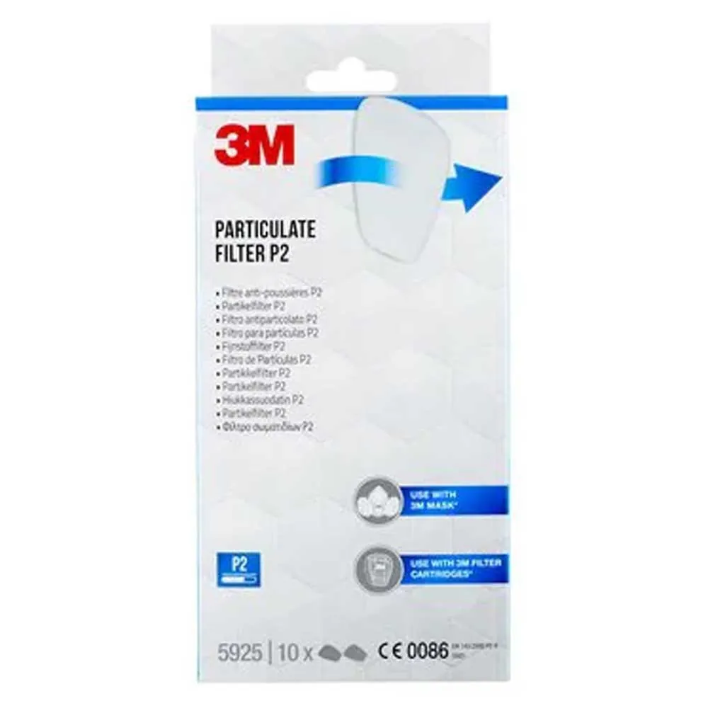 P2 R protection against solid and liquid particles for use with filters for gases and vapours 3 M™ Series 6000 (requires a retainer 501) can be used with any half mask or mask reusable full 3 m™ connection type bayonet type connection bayonet allows to attach the filters into position, which facilitates placement designed to optimize the field of view helps to work safely in hazardous areas 3M 5925™ particulate filters are P2 R filters that you can use with the series 6000 to get protection combined with gases and particles (in conjunction with a retainer 501 filter).