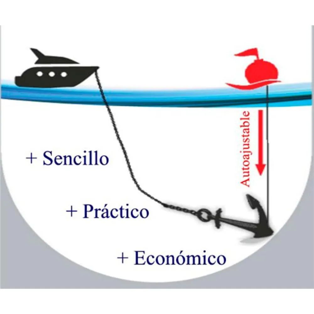 thanks to the roll-up mechanism, AnchorRoll self-adjusts to the water depth and thus always floats directly above the anchor.