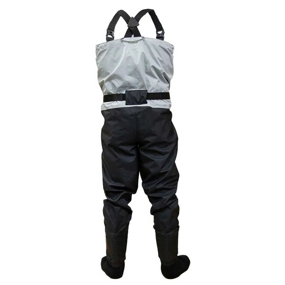 Breathable wader with 5 layers of protection up to the waist and 3 layers in the upper area. Preformed angle in the knee for greater comfort when walking, bending over, etc