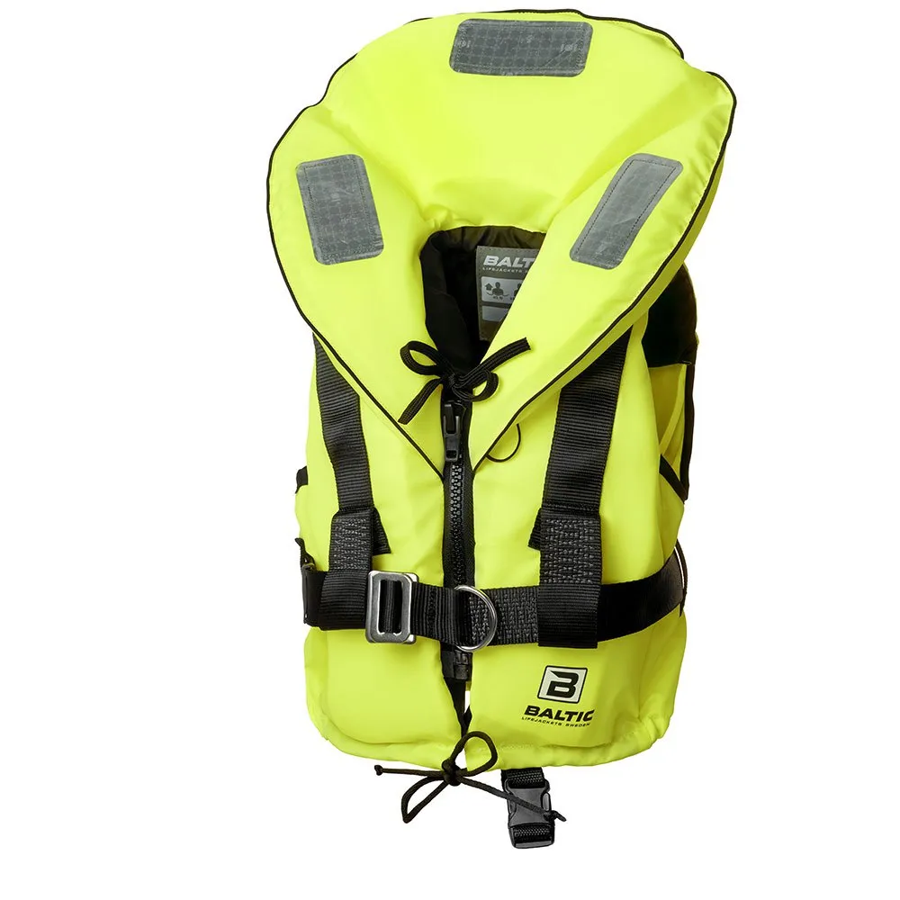 A lifejacket for children and juniors with integrated CE approved safety harness with a stainless steel D-ring front and back for lifeline attachment. Size 3-15 kg has D-ring only at the back. Fitted with whistle, retro-reflective patches and crutch strap. The smallest size is equipped with grab handle behind the collar, beaver tail crutch strap and twin fastening points for the best possible fit.