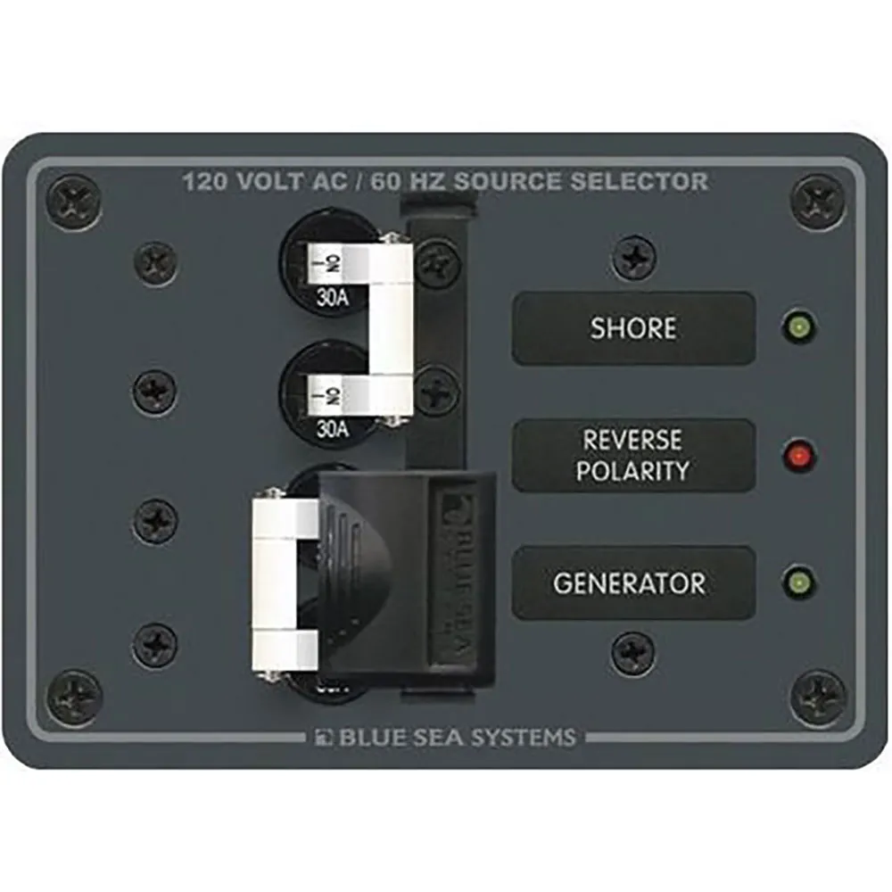 Effortlessly manage your vessel´s 230V AC power with the Blue Sea Systems Source Selector. This robust panel allows you to safely switch between two sources, like shore power and a generator. Its critical safety feature, a mechanical lockout, physically prevents connecting both sources at once, protecting your electronics from damage and eliminating hazardous back-feeding. A 16A double pole breaker provides overcurrent protection, while bright LEDs confirm power status and warn of reverse polarity. Built for the demanding marine environment, it’s the ultimate solution for secure and simplified power control