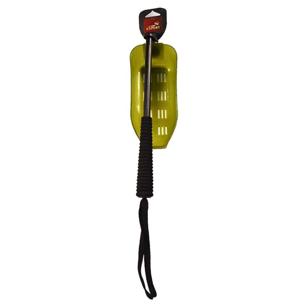 The green threaded-head baiting spoon from the CXP range offers an easy way to deliver larger quantities of pellets, boilies, seeds, or groundbait balls from a boat or even from the shore. When fishing at a distance where hand feeding is no longer an option, this baiting spoon, also known as a throwing spoon, comes into play. Thanks to the standard threading, it is compatible with any handle, allowing the heads to be used with custom handles. However, both products come with a 25 cm threaded, comfortable grip handle, so they can also be used with this. The larger the handle used, the farther the feeding distance achievable with the spoon.