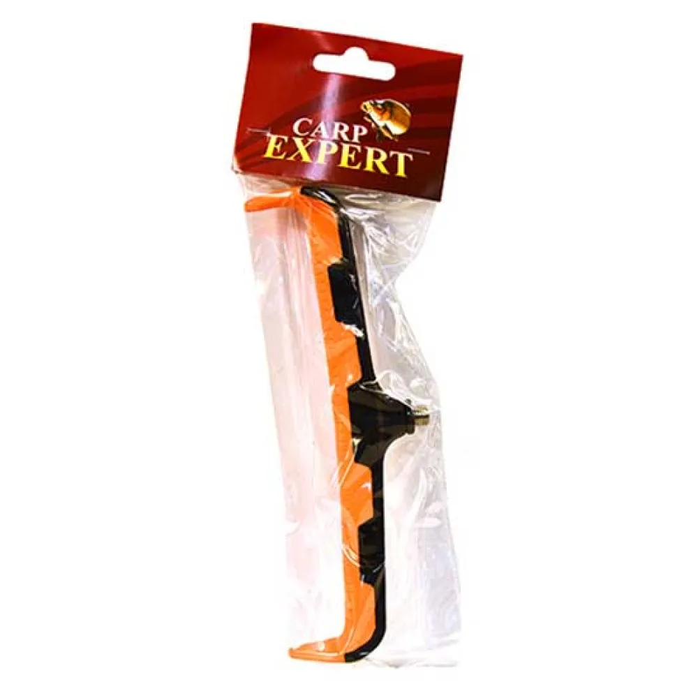 The orange-black plastic rod rest head bears the Carp Expert brand. Its threaded part is standardized, making it compatible with any bankstick, feeder arm, tripod, or rod pod. Made of plastic, the rod rest head provides a secure hold while being gentle on the often delicate carbon surface of the rod, preventing scratches. It is also an excellent choice for method fishing.