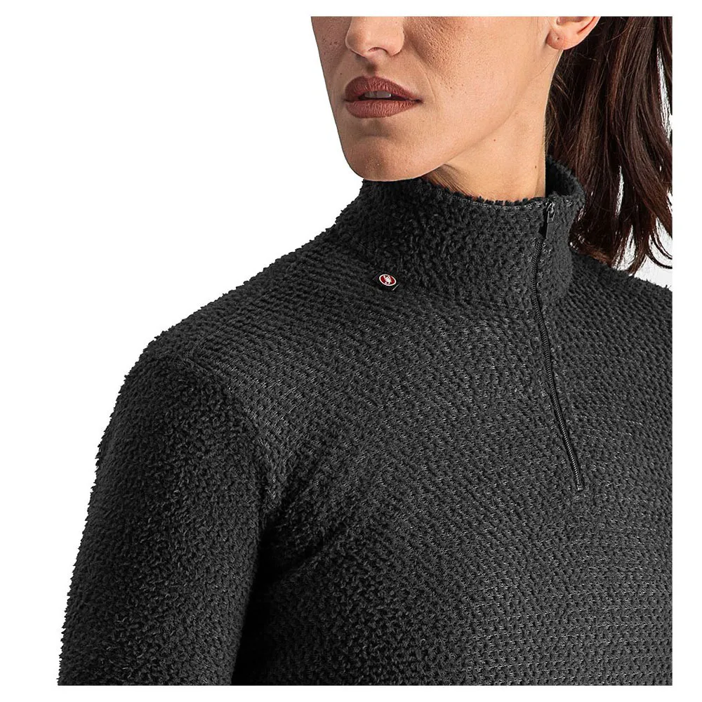 We´ve given it a half zip so it doesn´t create bulk over the lower torso, and we´ve mounted the zip slightly off-center to avoid the bulk of multiple zippers at the neck.