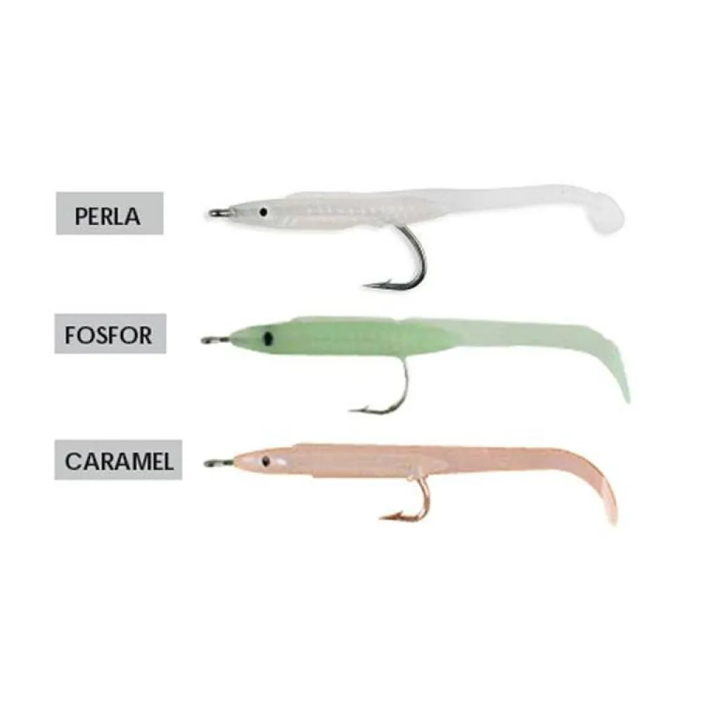 The lure slips off the hook so it can be removed or replaced if necessary. It has given me very good catches of small and medium species, especially in fishing from rocks or rockfishing in salt water.