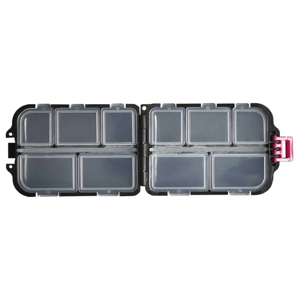 This small plastic double side plastic box is expertly divided into 10 fixed departments, with five on each side, ideal for hooks, swivels, or general tackle organizing. This systematic separation prevents your small parts from mixing, protecting hook points and making component selection swift and effortless. The durable construction and secure latching system on each side provide peace of mind, guaranteeing that the contents will remain safely contained, even when transported over rough terrain or jostled on a boat. As one of the most versatile Small Parts Boxes on the market, it streamlines your rigging process, saving you valuable time on the water so you can make more casts.