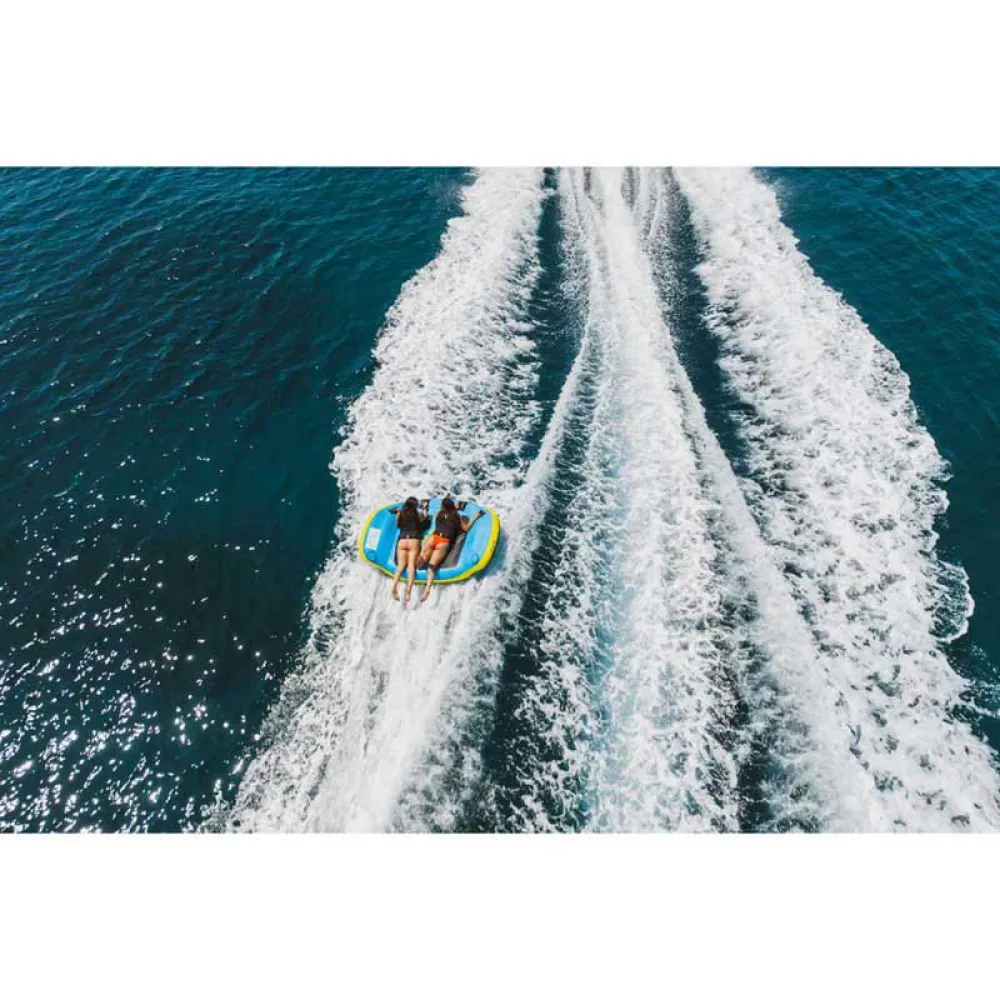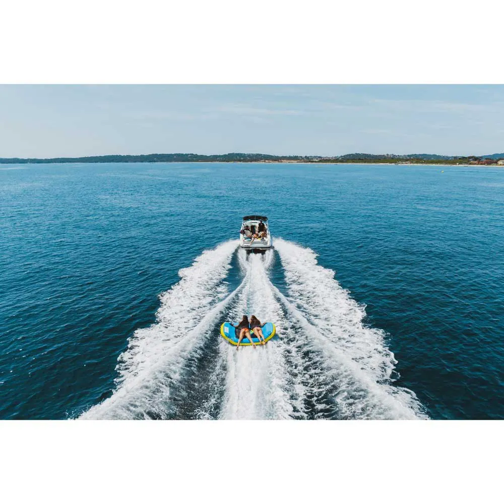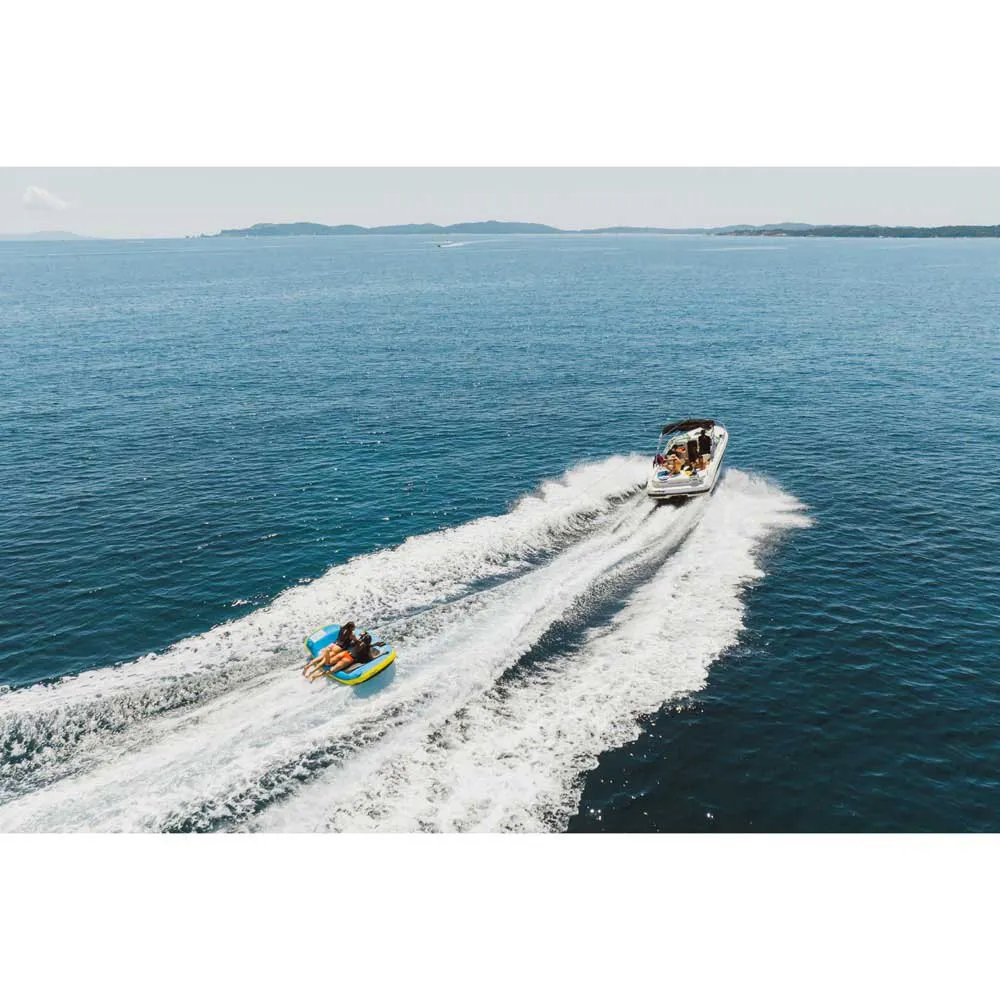 The COASTO Beagle 2P special towable in Blue / Yellow / Black is a fun and eye-catching towable designed for two riders. This towable features a unique and special shape that sets it apart from traditional towables. The vibrant colors of blue, yellow, and black add a pop of color to any water activity. The Beagle 2P is designed for maximum comfort and stability, with durable handles and a reinforced tow point for a secure connection to your boat. Whether you're looking for an exciting ride with a friend or family member, the COASTO Beagle 2P special towable is sure to provide hours of entertainment on the water.