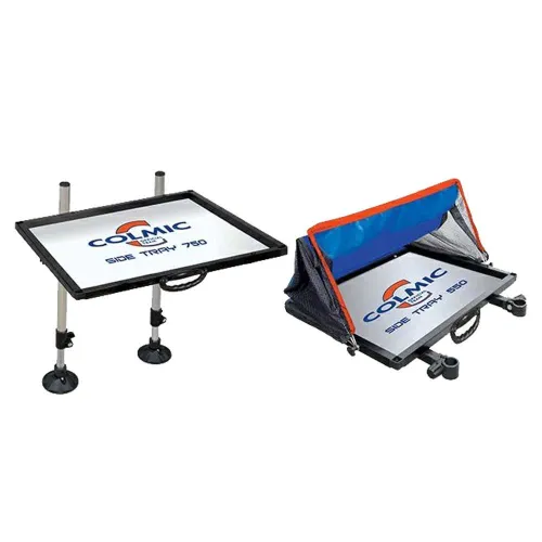 The standout benefit of the COLMIC Logo 850 is its exceptional stability. Unlike smaller, single-point-of-contact trays that can wobble or tilt under load, this model is engineered with a dual-leg support system. The two robust 36mm diameter legs create a steadfast foundation, ensuring that your bait, tackle boxes, and personal items remain secure, even in windy conditions or when you´re actively moving around your station. This level of stability gives you the confidence to focus completely on your fishing, knowing your essential gear is safe and sound.