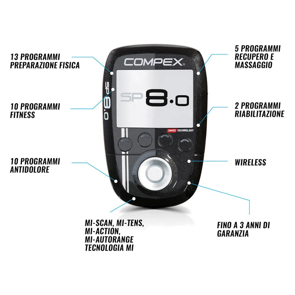 The Compex SP 8.0 wireless muscle stimulator, equipped with 40 programs, is tailored for dedicated athletes who train and compete frequently.