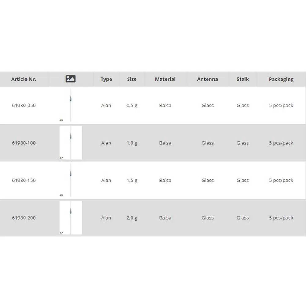Cralusso products have deservedly become known and loved around the world. The tools born as a result of quality, uncompromising, brilliant development work have become indispensable among Hungarian and foreign anglers alike. Alan is an elongated float with a balsa wood body, fiberglass antenna and stem, available in a wide range of sizes. It is sold from 0.3 gr to 3 gr, in 9 different sizes. Ideal for still-water bream fishing, carp fishing by poles.