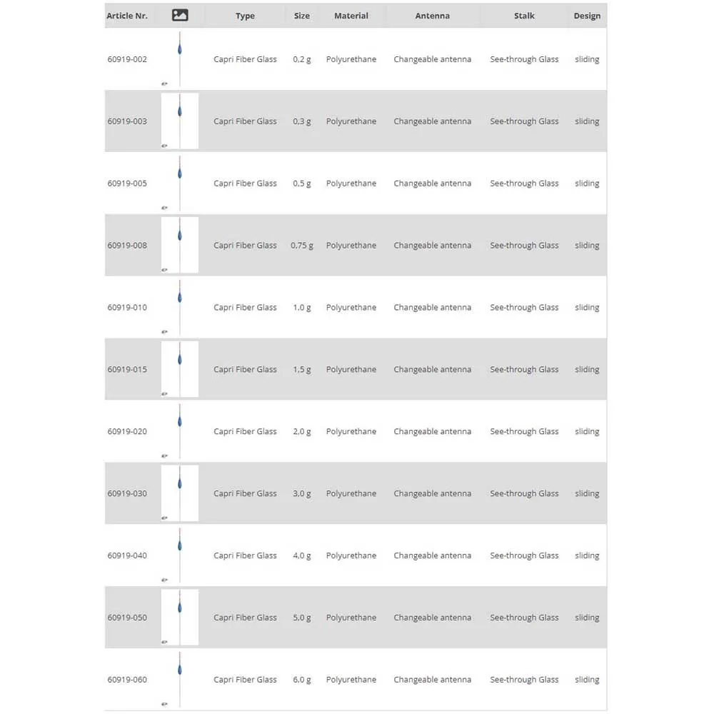 Ease of use, variability and a durable design were also our most important expectations when creating the Cralusso drop float family. Accordingly, the components and antennas of the Cralusso drop floats can be freely exchanged and varied, which allows for a wide variety of combinations. Due to its slim shape, the Capri is suitable for fine fishing. We can make our float even more sensitive if we use the one-mm transparent glass stem, which is completely invisible in the water, as an antenna. The body of the float can be turned on the stem, thereby changing the position of the center of gravity. In choppy water, by turning the chunkier part downwards, you get a stable, wave-resistant float. Thanks to the polyurethane body, we don´t have to be afraid even during fatigue, because with this float, there will be no mistake that the line might cut into the float body. Due to the internal cable routing, there are no broken cable guide eyes or broken antenna from the float.