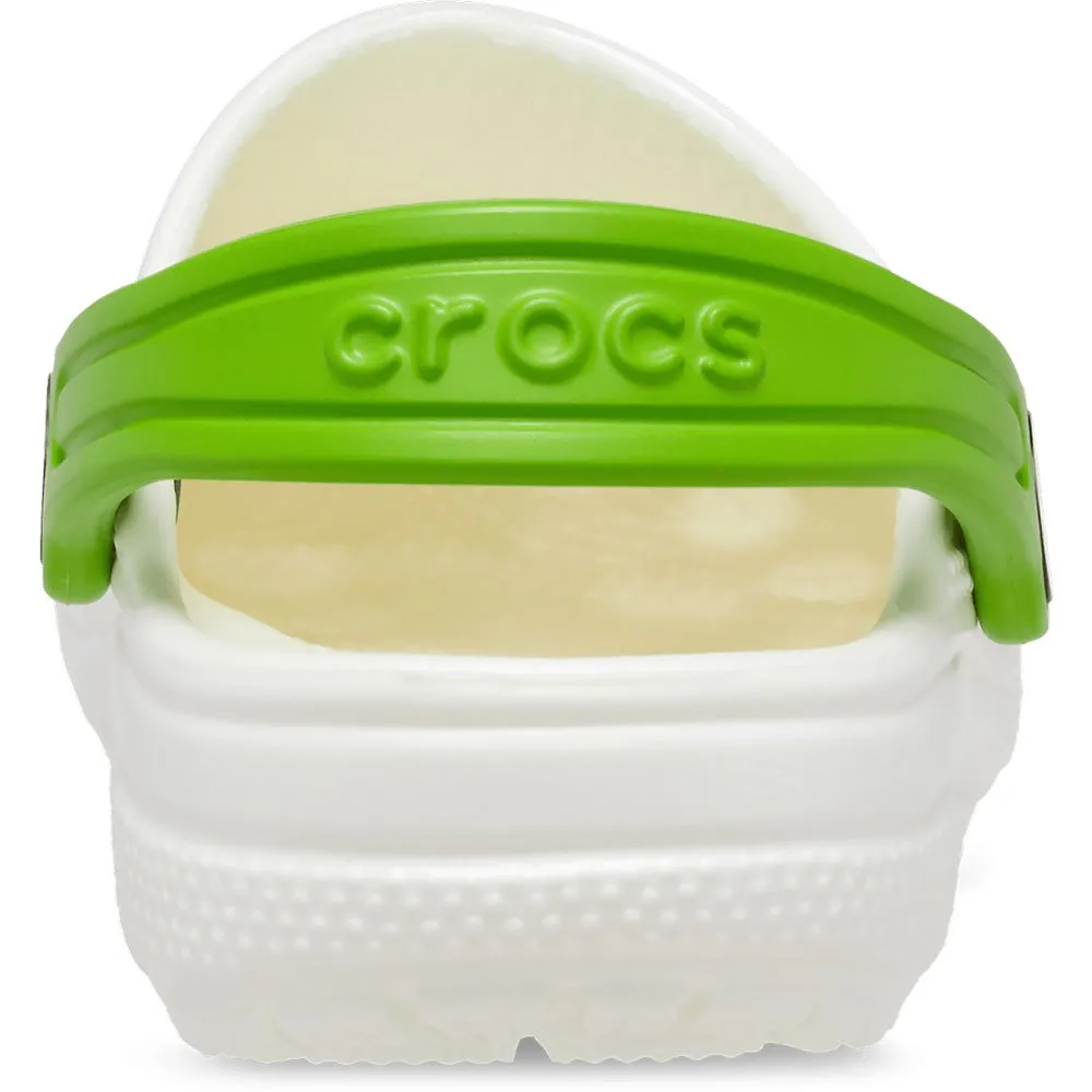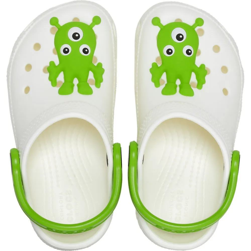 Little ones will love these cool glow in the dark clogs with a raised alien character patch! The alien character and glow in the dark material gives them fun style, and Croslite™ foam construction keeps them light and easy to wear. Grounded in comfort, spiked with personality.