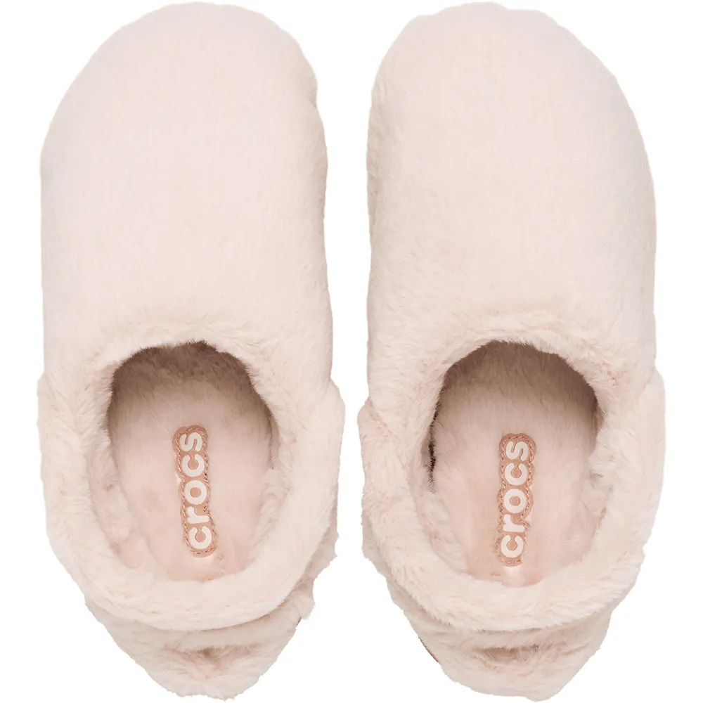 The faux fur upper provides the coziness of a slipper, and the versatility of the Croslite™ outsole takes you wherever your day goes.